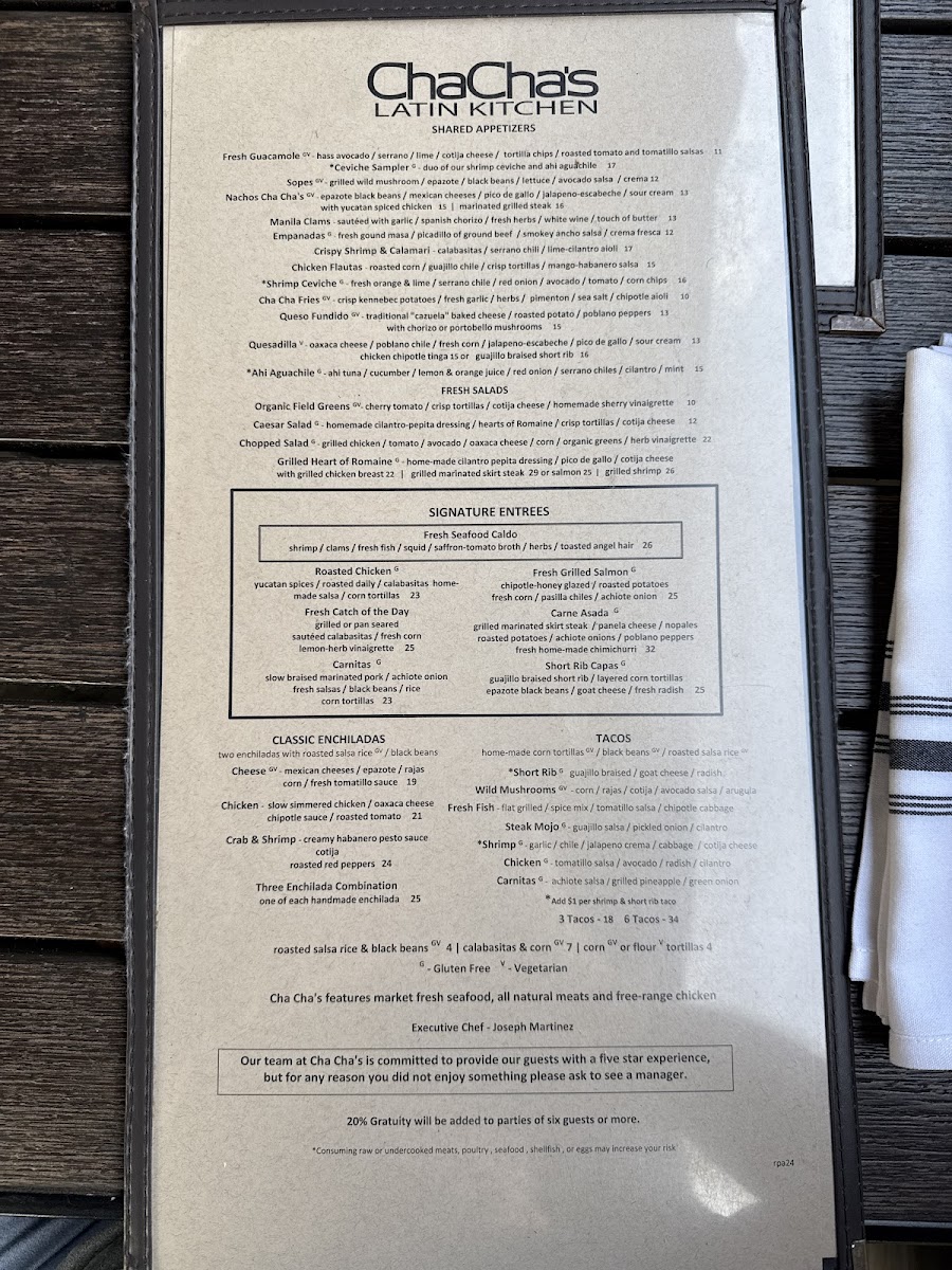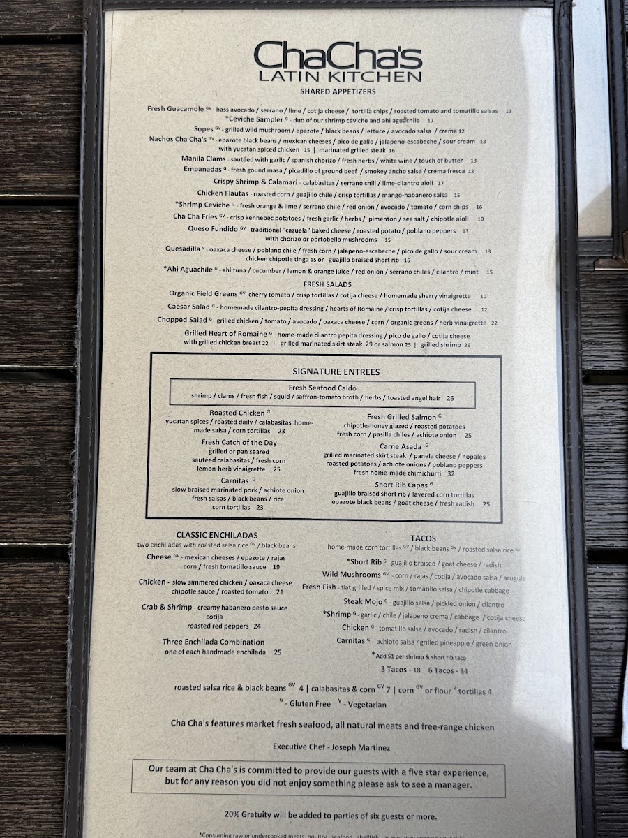 One of the standout features of Cha Cha's is its extensive menu, designed to showcase the best of Latin flavors. Take, for instance, the House-Made Salsas, Guacamole & Chips, perfect for sharing or as a savory starter. The Pint of Fresh Guacamole is a crowd-pleaser, made to serve up to 35 people at just $23.99, bringing an authentic taste of Mexico straight to your table. For a little zest, try the Pint of Pico De Gallo or Pint of Charred Fresh Tomato, both at $10.99. Paired perfectly with Freshly Cooked Tortilla Chips ($10.99), it’s an appetizer that sets the tone for what's to come.